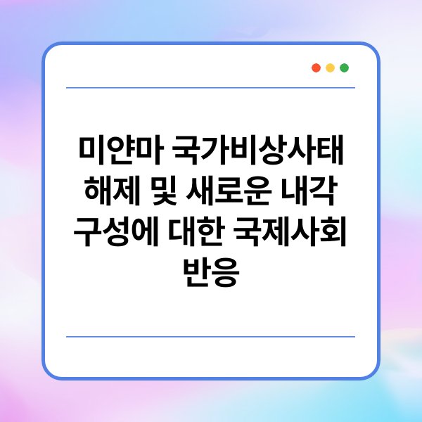 미얀마의 국가비상사태 해제와 새로운 내각 구성에 대한 국제사회의 반응이 주목받고 있습니다. 2021년 쿠데타 이후 미얀마의 정치적 상황은 심각한 변화를 겪어왔으며, 최근 비상사태 해제가 이뤄지면서 국제 사회의 관심이 더욱 집중되고 있습니다. 본 글에서는 미얀마의 비상사태 해제와 새로운 내각 구성과 관련된 국제사회의 다양한 반응을 분석합니다. 또한 이러한 변화가 미얀마의 정치적 안정성과 국제관계에 미치는 영향을 살펴보겠습니다.