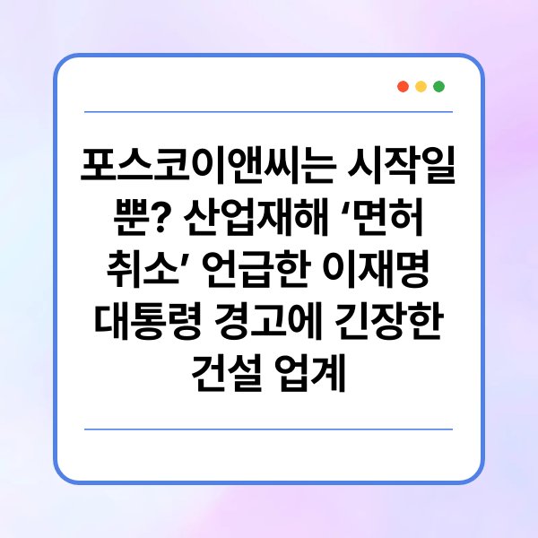 최근 이재명 대통령이 산업재해와 관련하여 건설업체의 면허 취소를 경고함에 따라, 포스코이앤씨를 포함한 건설 업계가 긴장하고 있습니다. 산업재해는 사회적 문제로 대두되고 있으며, 이에 대한 정부의 단호한 입장이 기업 운영에 크나큰 영향을 미칠 수 있습니다. 본 글에서는 이재명 대통령의 경고와 그로 인한 건설 업계의 반응, 그리고 앞으로의 변화에 대해 살펴보겠습니다. 이를 통해 독자는 산업재해 문제의 심각성과 그에 대한 정책적 대응을 이해할 수 있을 것입니다.