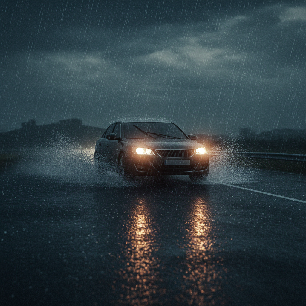 빗길에서는 평소보다 20~50% 이상 감속 운전해야 합니다. 특히 고속도로에서는 시속 80km 이하로 운행하고, 앞차와의 거리를 평소보다 2배 이상 충분히 확보하여 돌발 상황에 대비하세요. - ② 침수 도로 통과 요령 및 주의사항